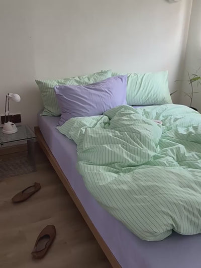 Daisy Mint Fresh Striped Bedding Set / Purple & Striped