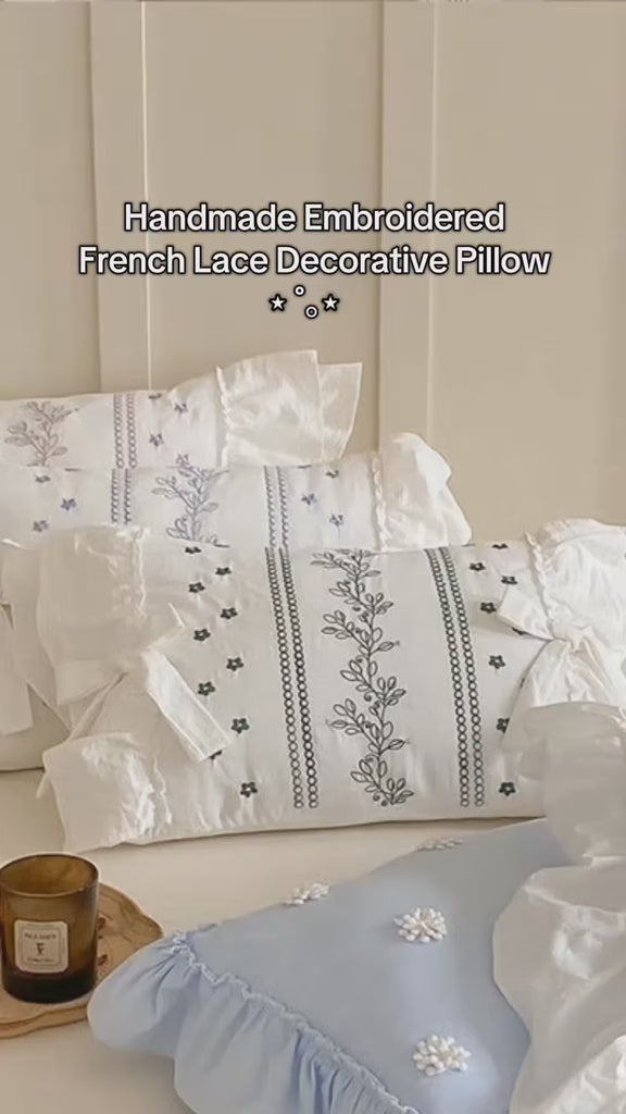 Indulge in luxury with Ever Lasting's Handmade Embroidered French Lace Decorative Pillow for a sophisticated and romantic touch to your bedroom. Made from 100% washed cotton, it offers comfort and style with its delicate details, ruffled design, and choice of three calming or vibrant colors. Elevate your bedroom with this exquisite pillow that exudes elegance, softness, and an enchanting ambiance.