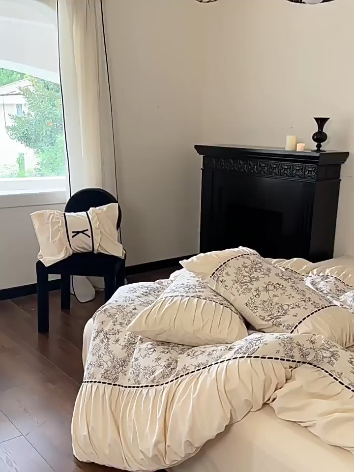 Transform your bedroom into a realm of timeless elegance with our French Black Lace Bedding Bundle. Adorned with intricate black lace, this bundle exudes the essence of French sophistication and comfort. Each duvet cover features four corner ties and a hidden zipper, ensuring your duvet insert stays securely in place all night. Elevate your sleep experience with a touch of refined luxury, creating a bedroom sanctuary where dreams are woven with the utmost elegance. Indulge in the allure of this exquisite bedding bundle, where romance meets relaxation in every detail.