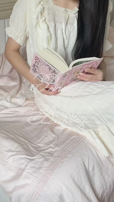Macaroon French Lace Ruffled Bedding Set / Pink