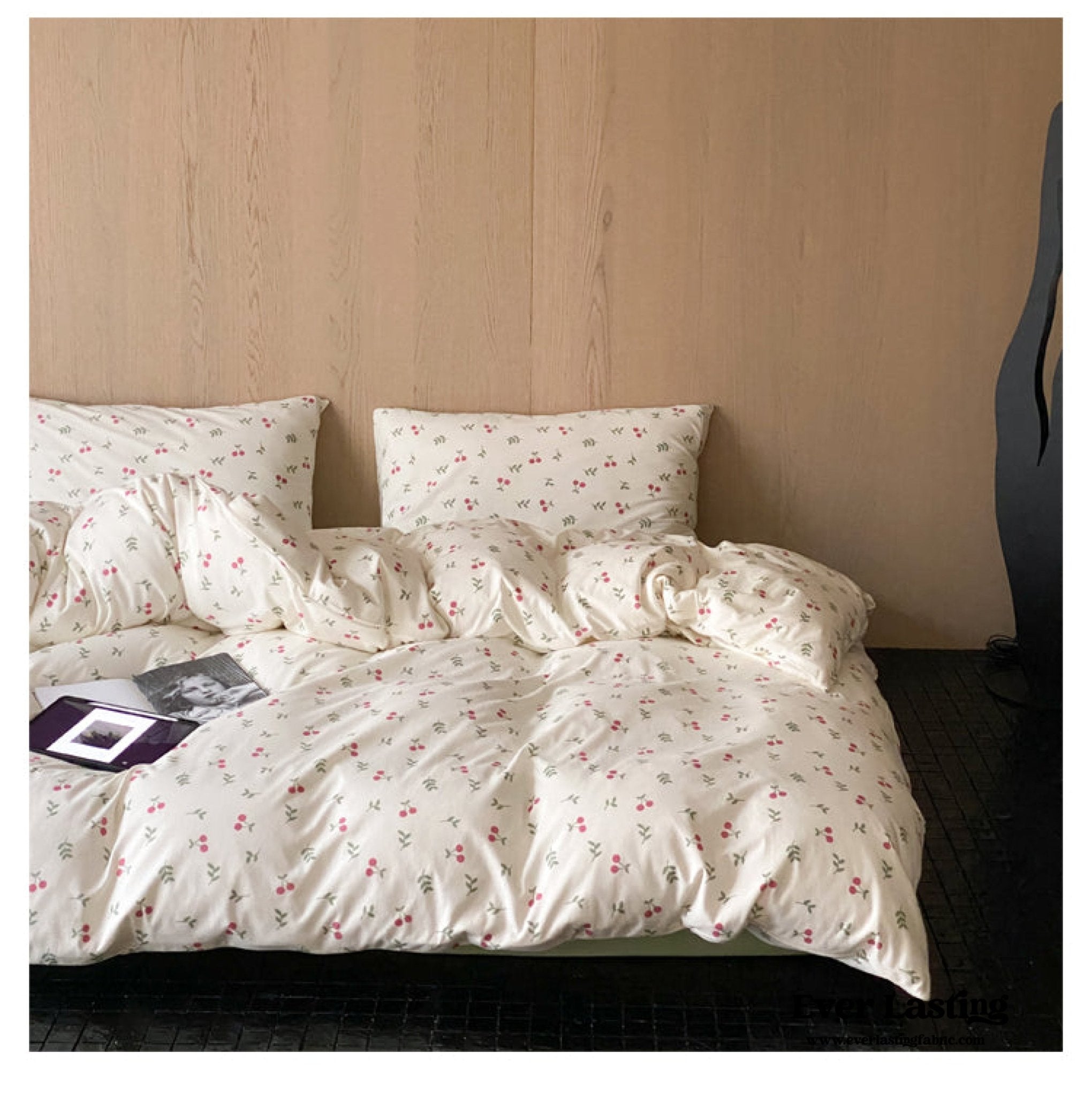 Jersey Knit Cotton Floral Bedding Set / Pink