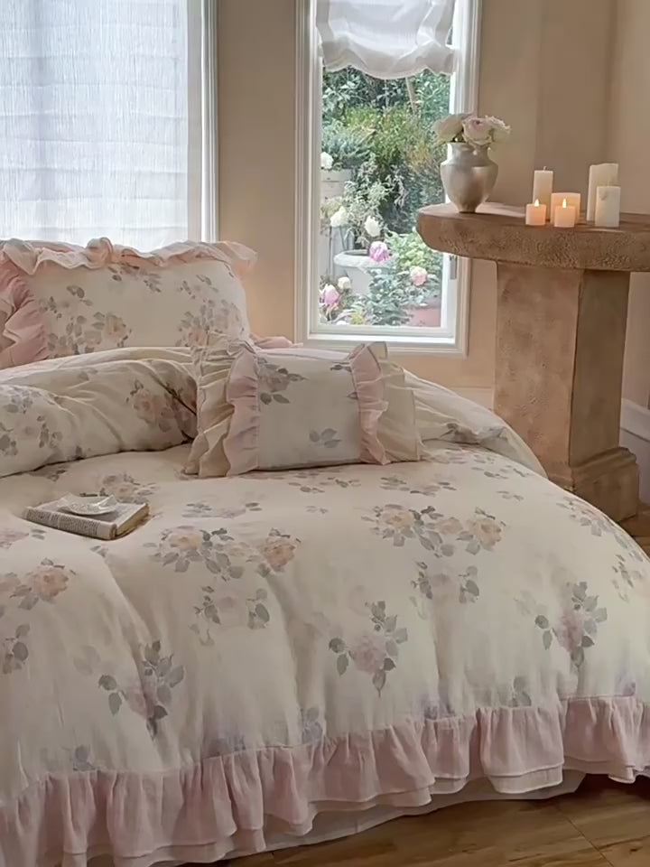 Millie Lace Ruffle Floral Bedding Set / Beige