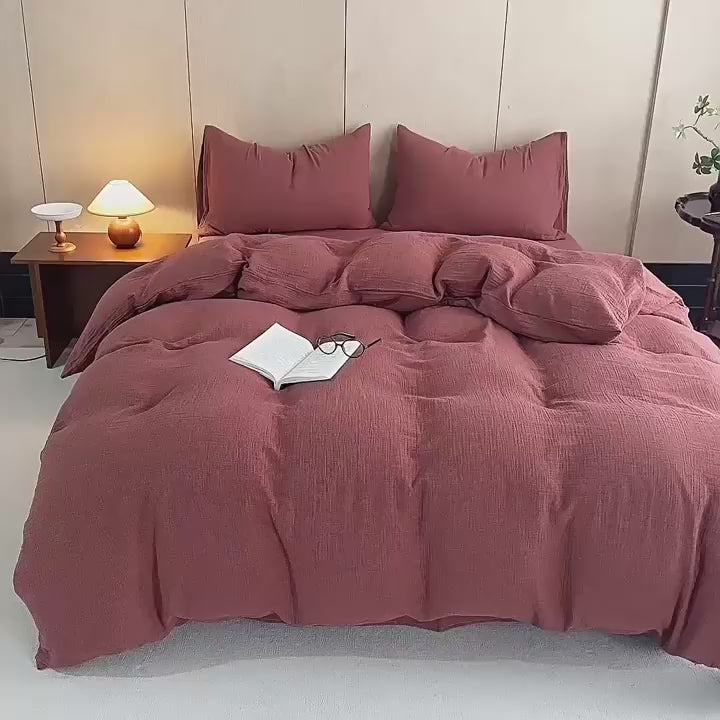 Wrap yourself in gentle comfort with the Simon Double Gauze Bedding Set by Ever Lasting, made from soft, breathable double gauze fabric that feels light, airy, and soothing against the skin for restful sleep; the duvet cover includes corner ties and a hidden zipper to keep your insert securely in place for a neat, tailored look, making this set perfect for anyone who loves natural softness, relaxed texture, and effortless everyday comfort.